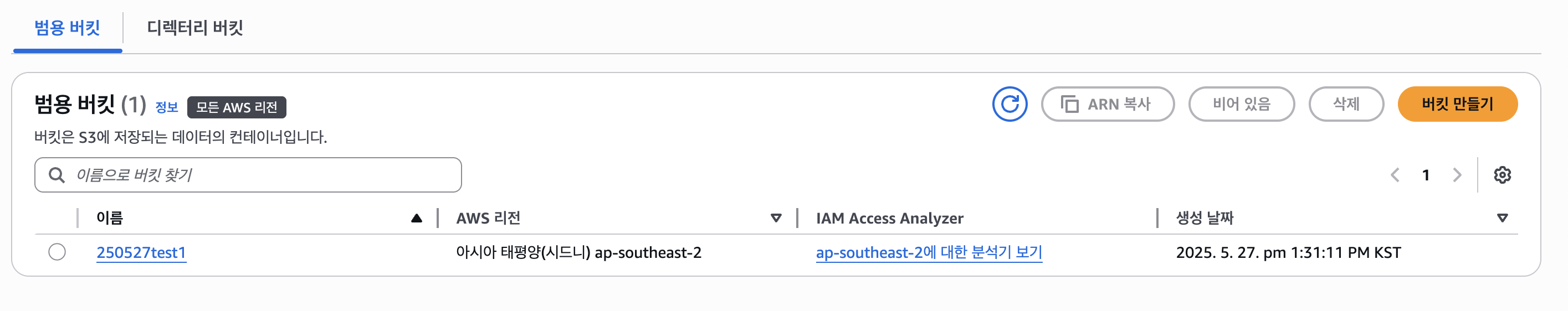 - [버킷 만들기] 버튼 클릭